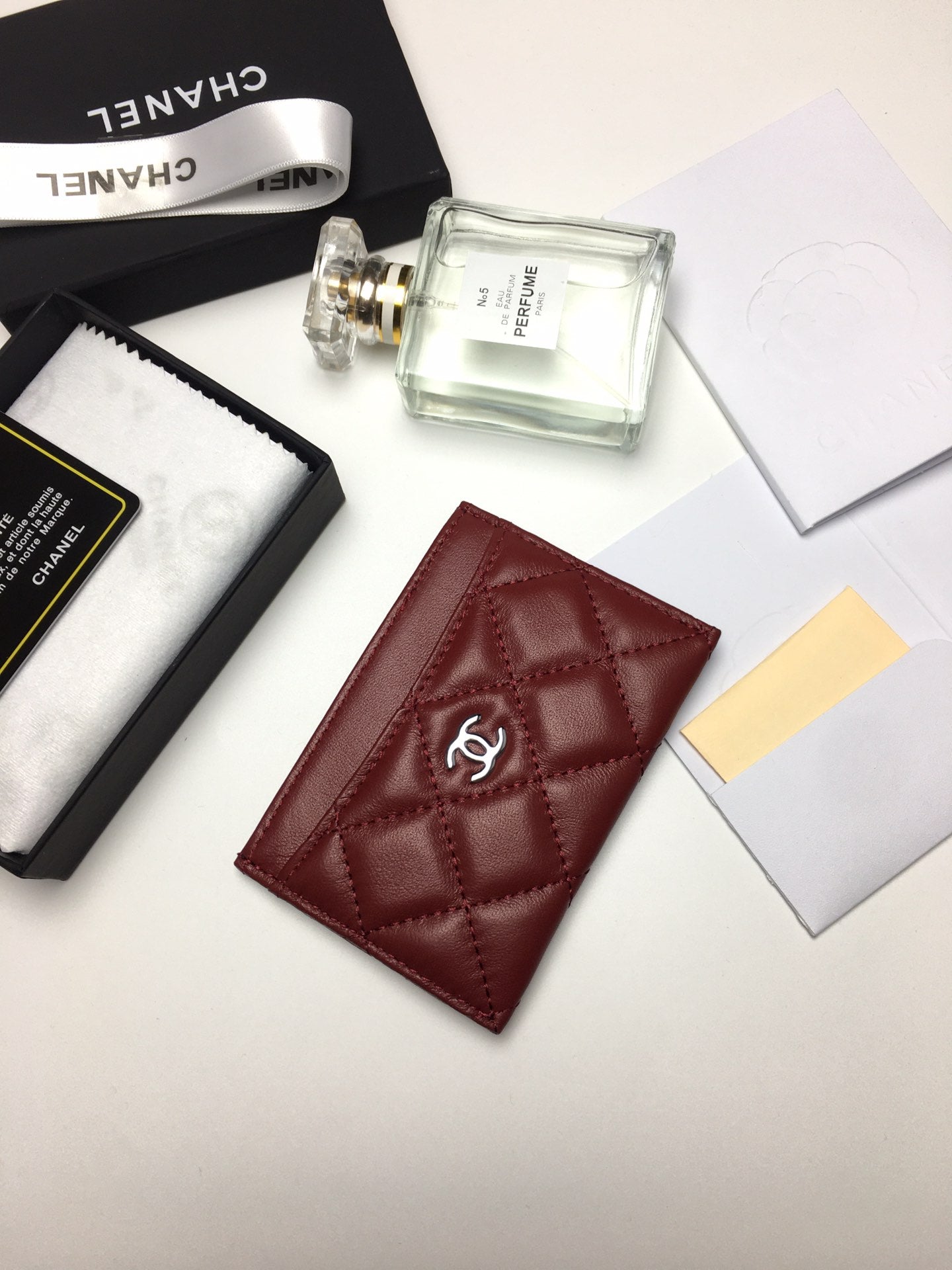 CC CARD HOLDER 11.2 GARNET CALFSKIN SILVER ICON