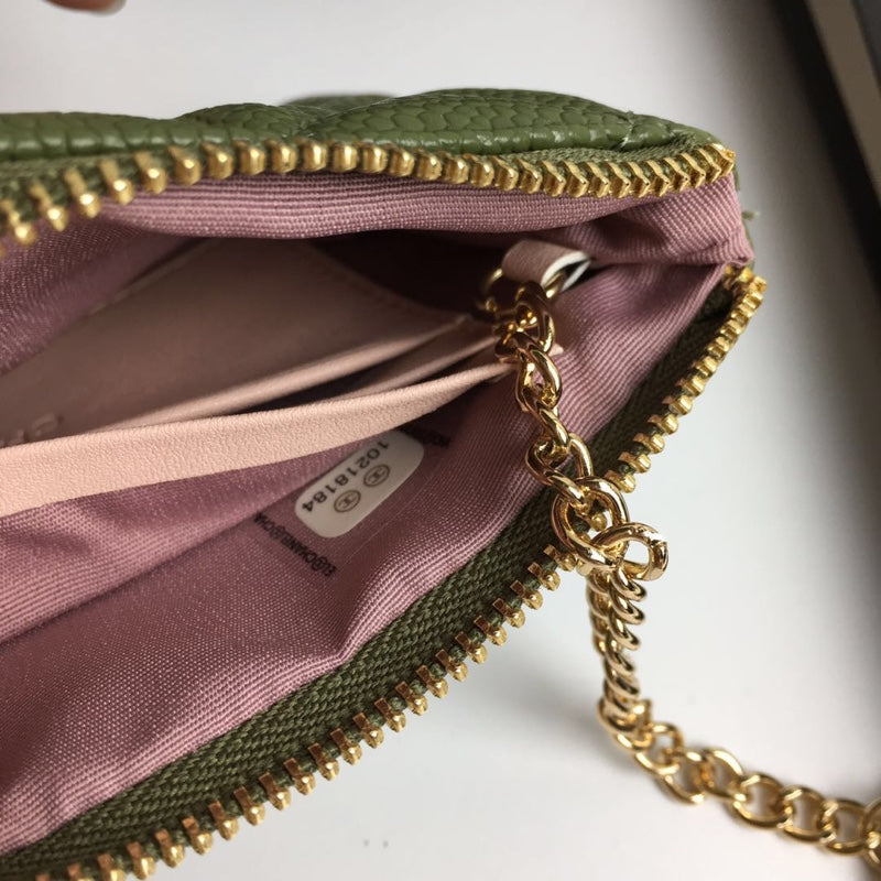 CC CLASSIC SMALL ZIPPED POUCH 15 DARK GREEN CALFSKIN GOLD ICON