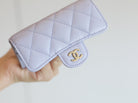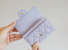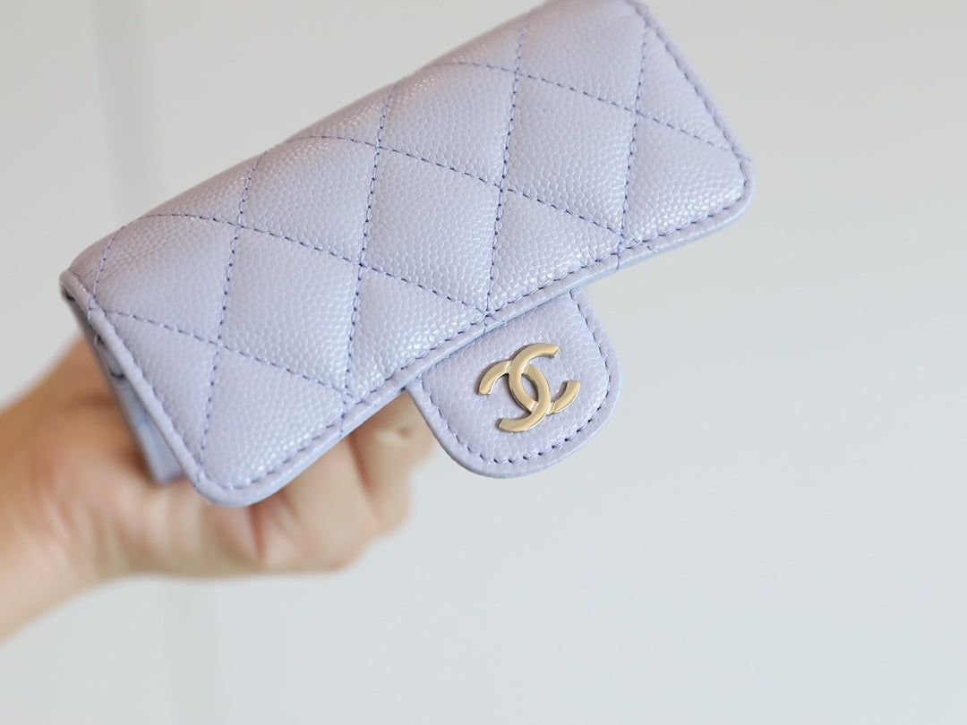 CC FLAP CARD HOLDER 11.3 LIGHT PURPLE GRAINED CALFSKIN GOLD ICON