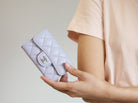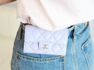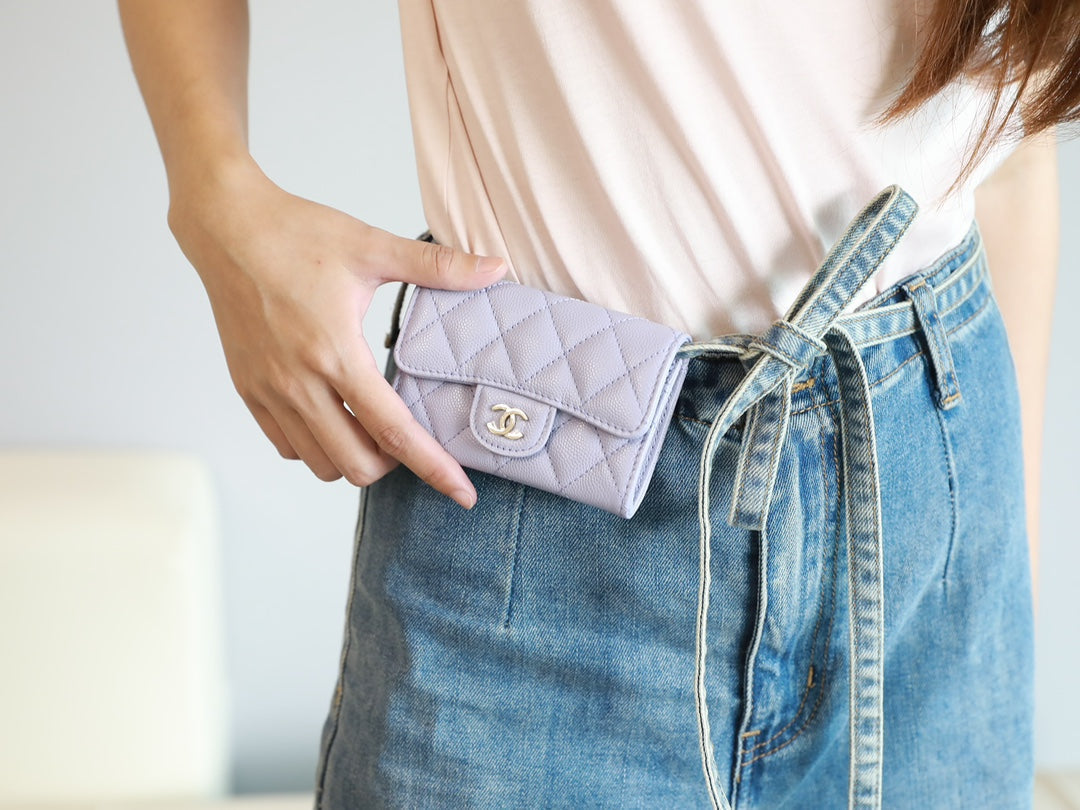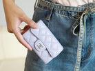 CC FLAP CARD HOLDER 11.3 LIGHT PURPLE GRAINED CALFSKIN SILVER ICON