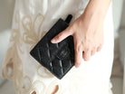 CC FLAP CARD HOLDER 11.5 BLACK GRAINED CALFSKIN SILVER ICON