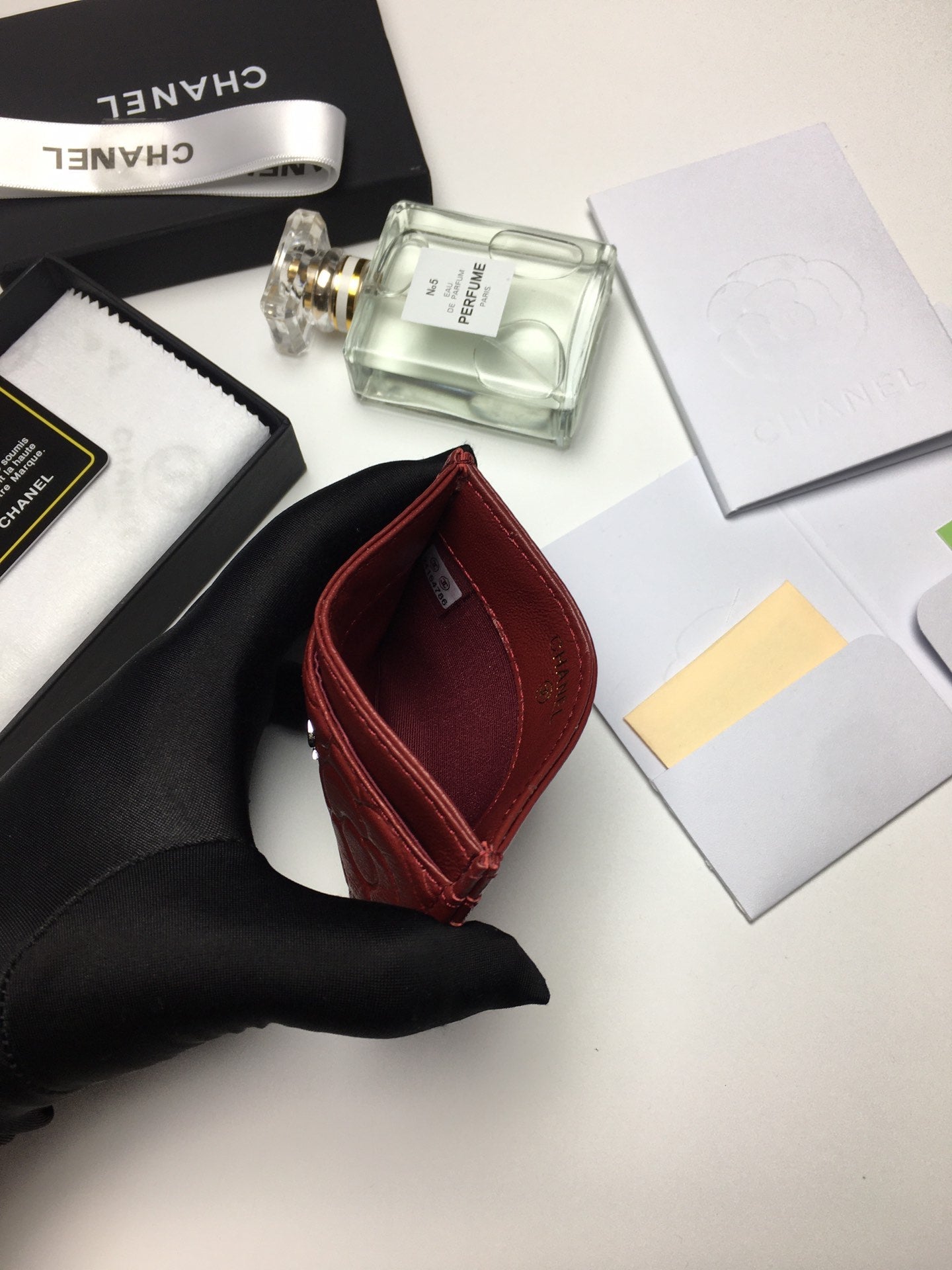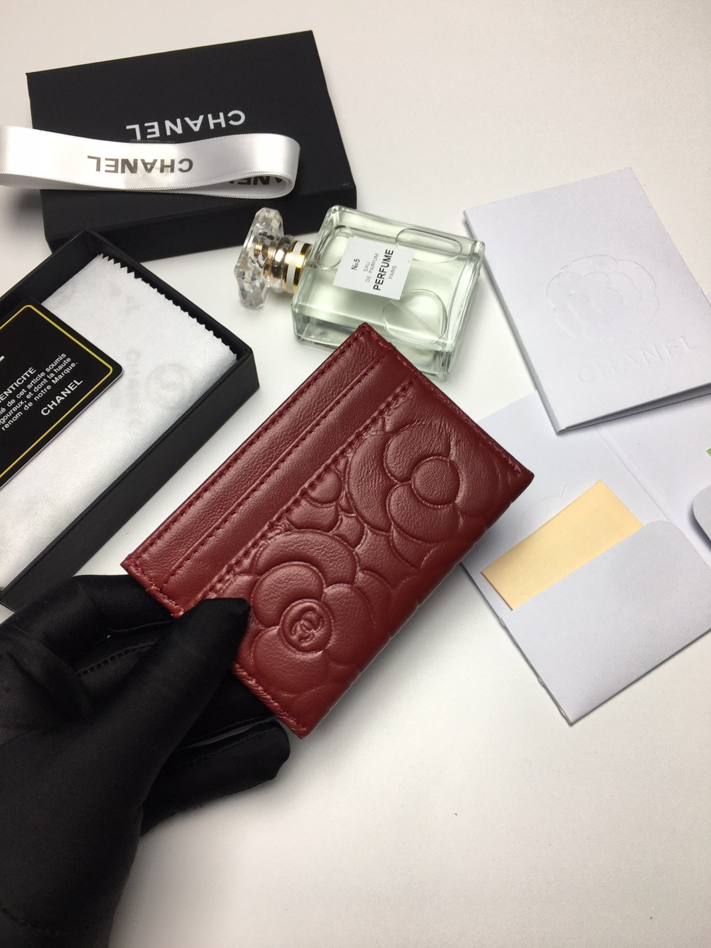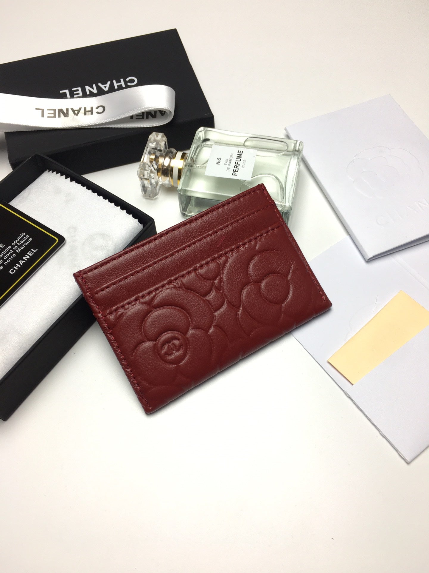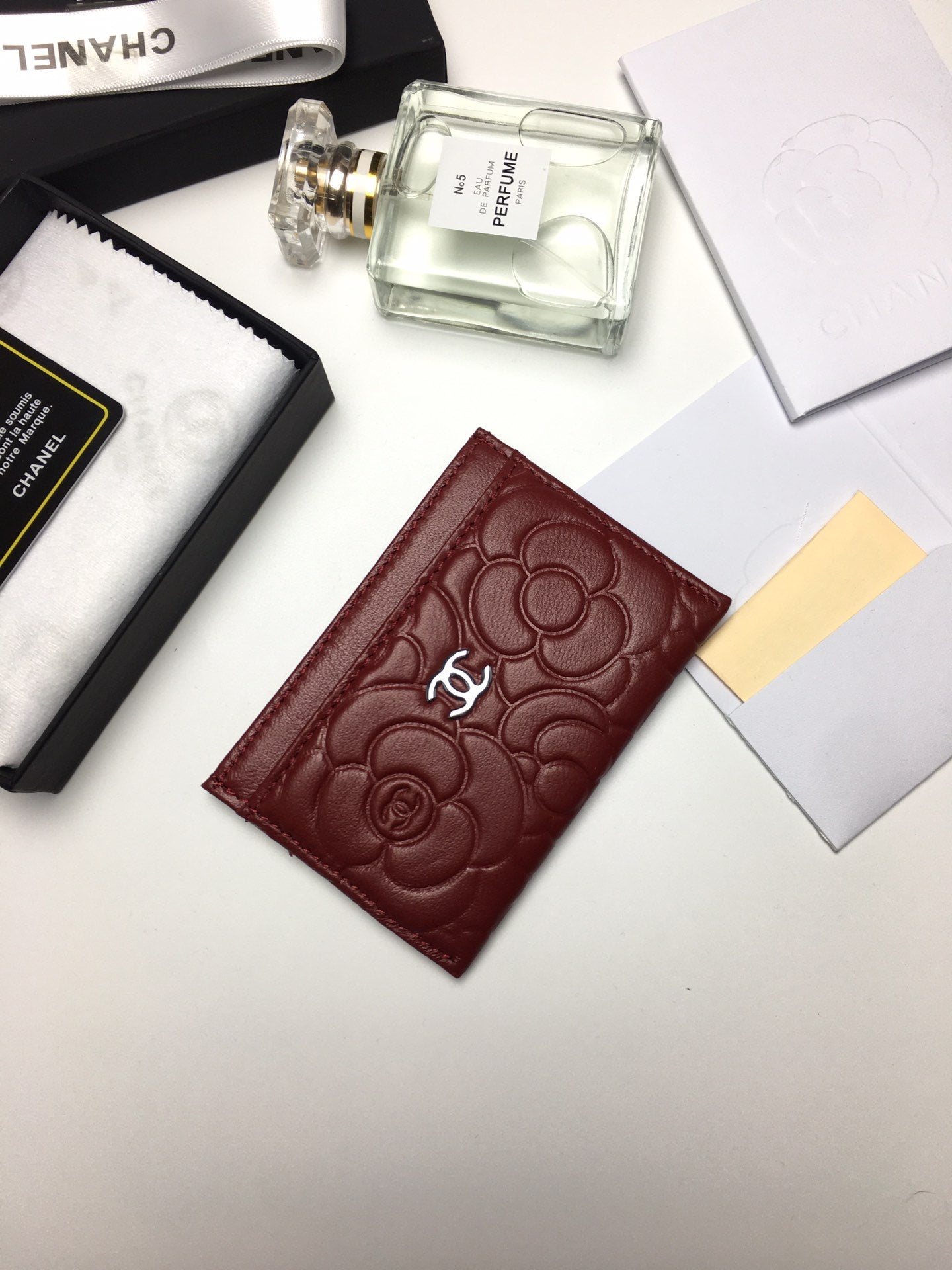 CC FLORAL CARD HOLDER 11.2 GARNET CALFSKIN SILVER ICON