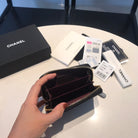 CC ZIPPED COIN BASIC PURSE 11 BLACK CALFSKIN GOLD ICON