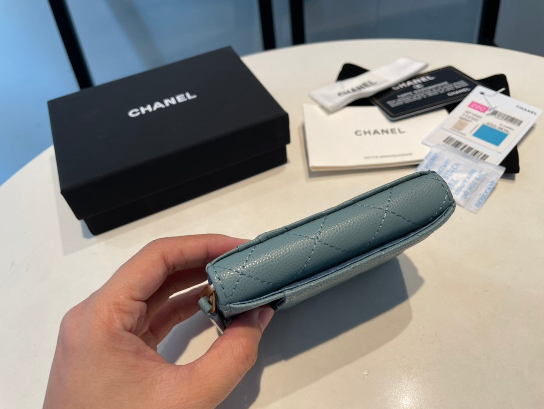 CC ZIPPED COIN PURSE 11 TEAL GRAINED CALFSKIN