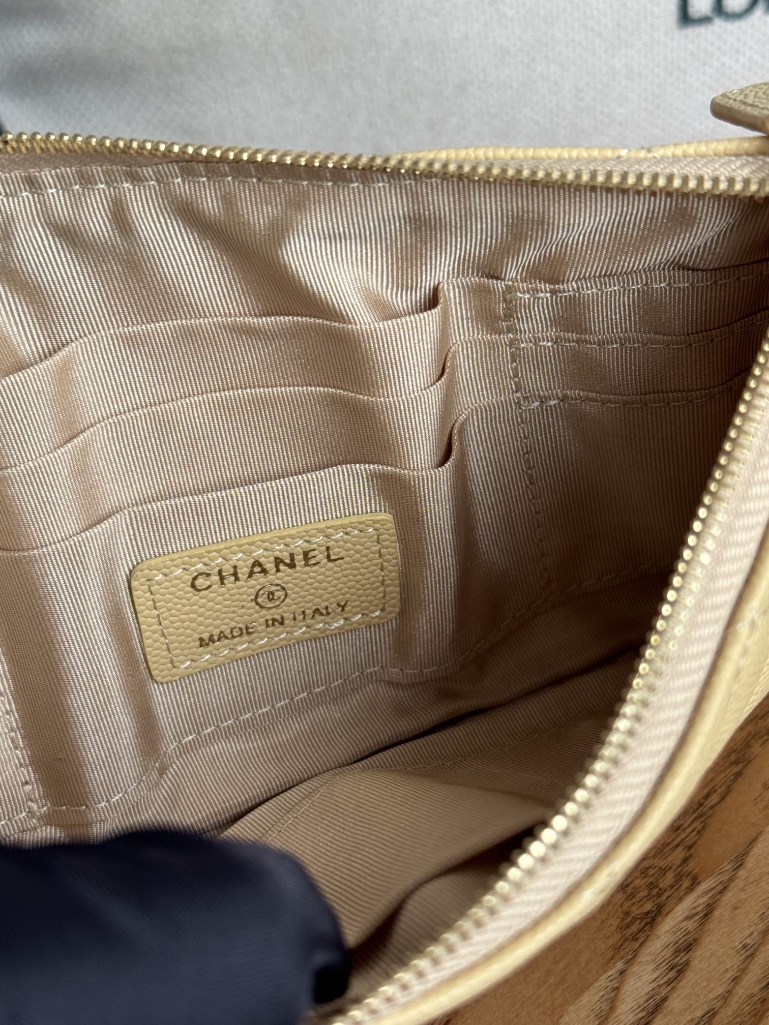 cc zipped wallet 20cm light yellow quilted caviar gold hardware