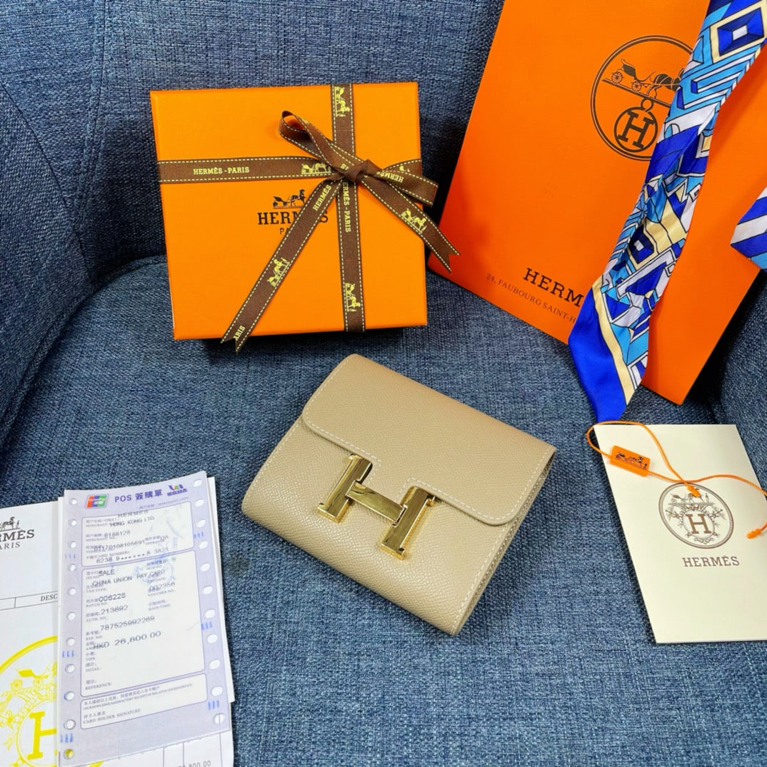 HM CONSTANCE 12 KHAKI CALFSKIN GOLD HARDWARE