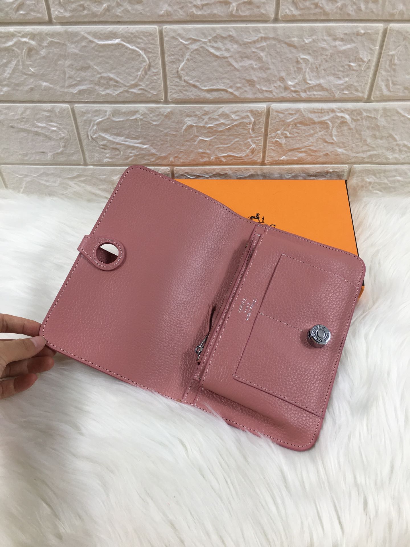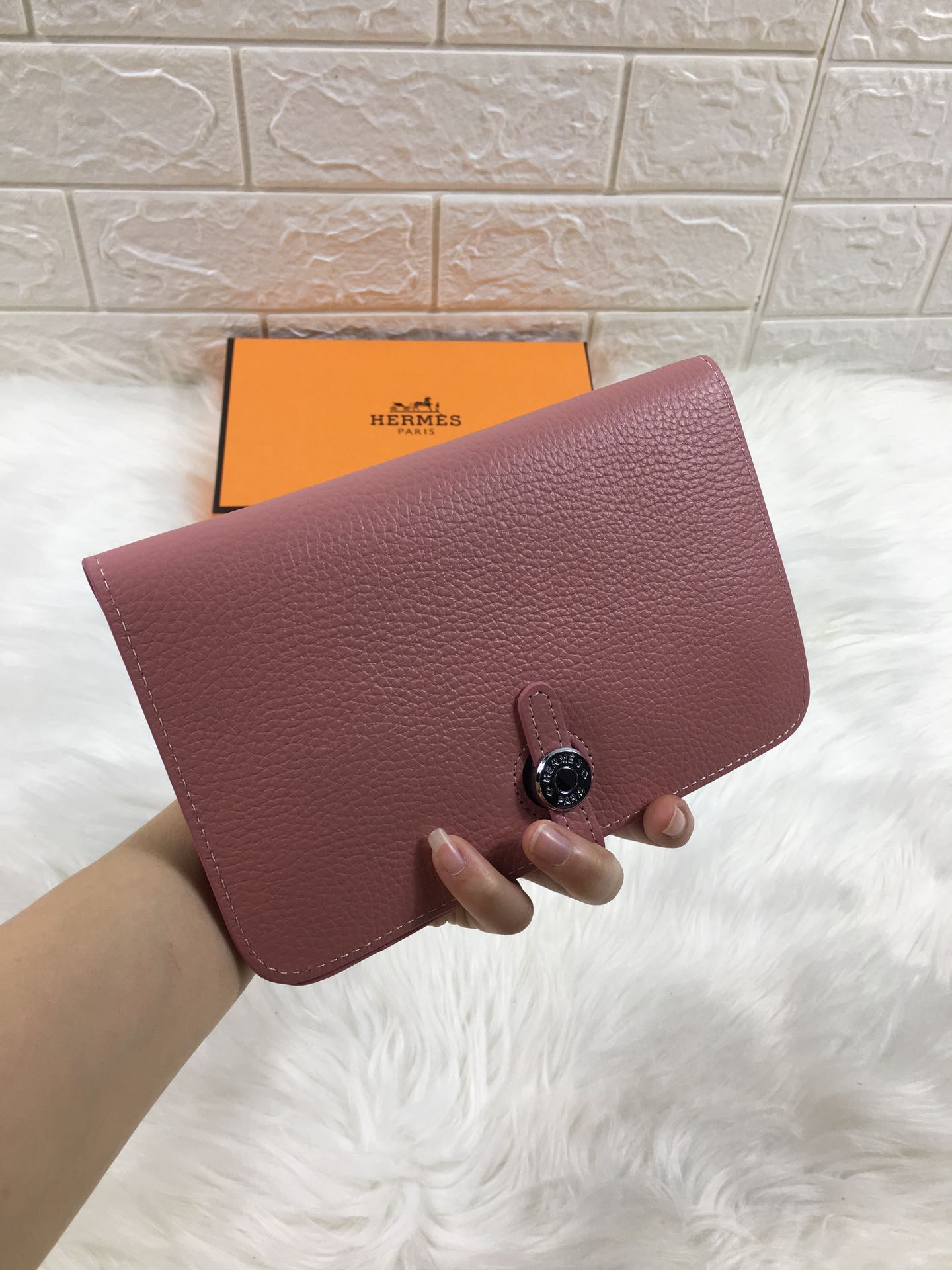 HM DOGON WALLET 20 DUSTY PINK GRAINED CALFSKIN