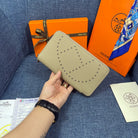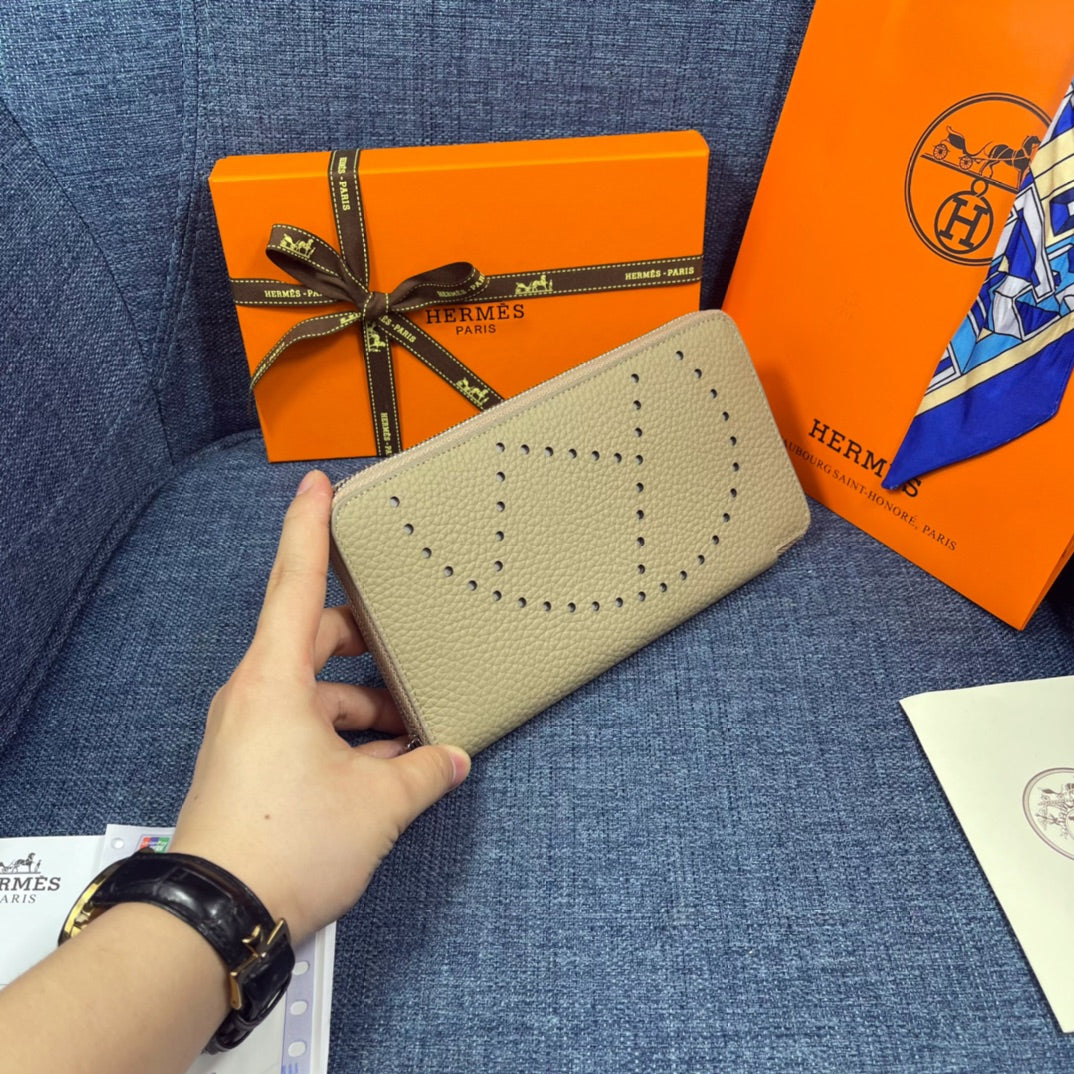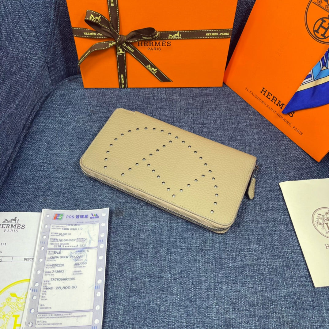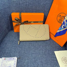 HM SILK'IN HOLED WALLET 19 KHAKI GRAINED CALFSKIN