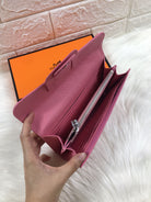 HM SNAP LOCK WALLET 19.5 FLAMINGO PINK GRAINED CALFSKIN
