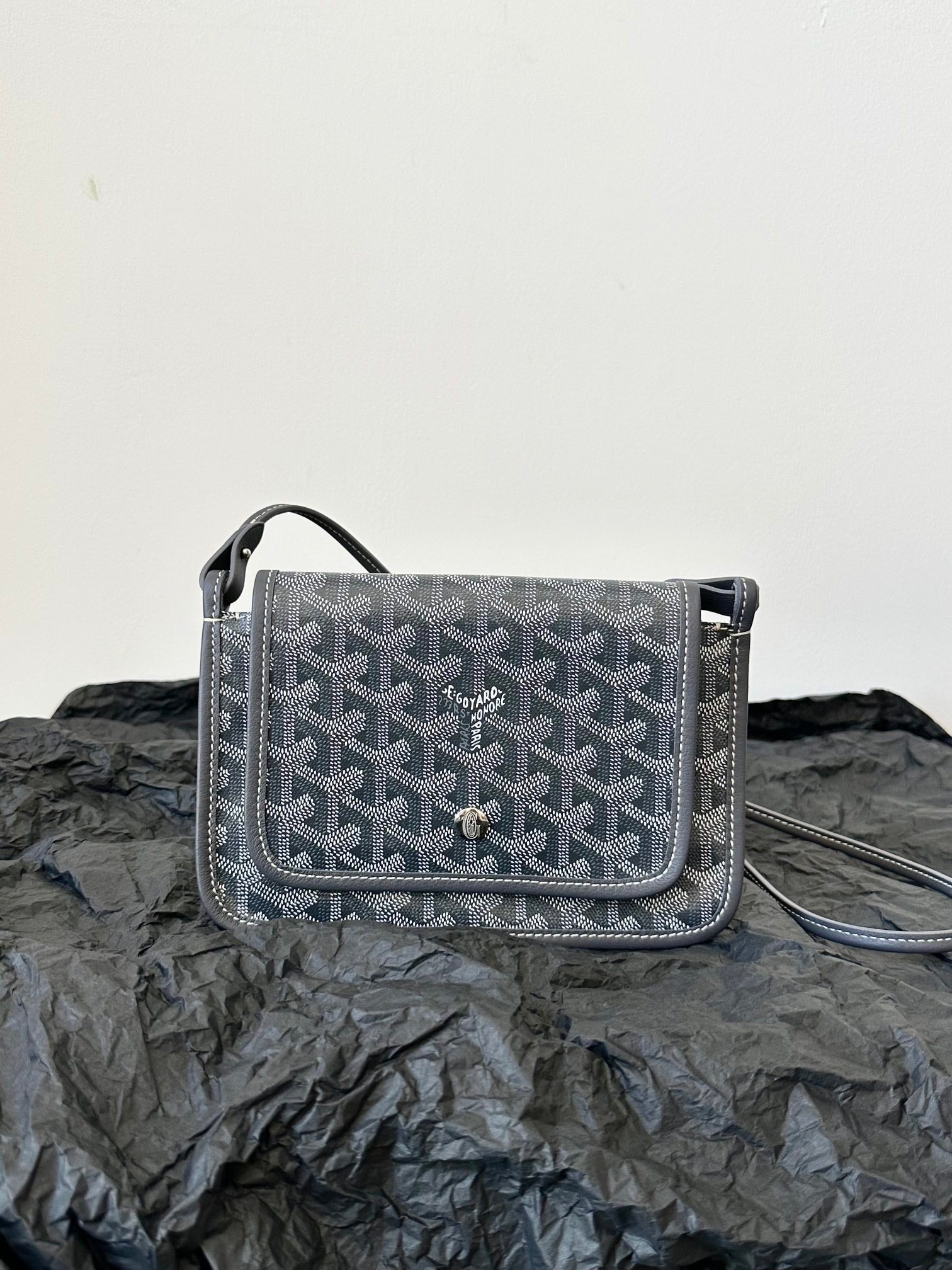 PLUMET POCKET WALLET 20 IN GREY BLACK GOYARDINE CANVAS AND LAMBSKIN TRIM