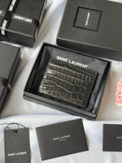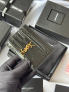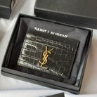 YSL Card Holder 10cm Wallet Black Gold Crocodile Leather 240550