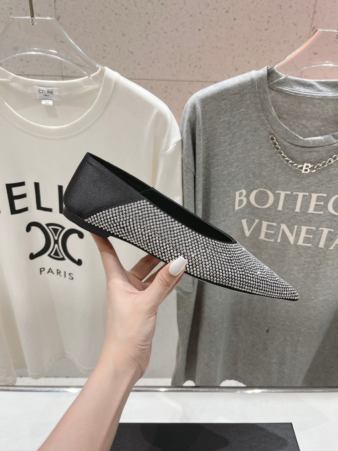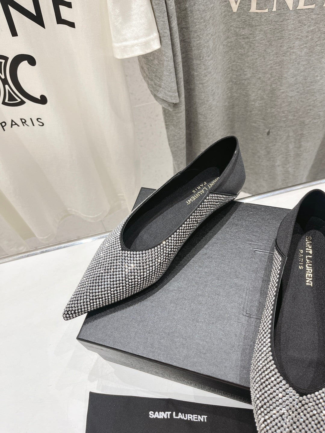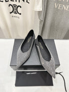 SL NOUR LEOPARD POINT TOE BALLET BLACK CRYSTAL SATIN