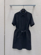 YSL 2025 Shirt Dress Black Flax Cotton