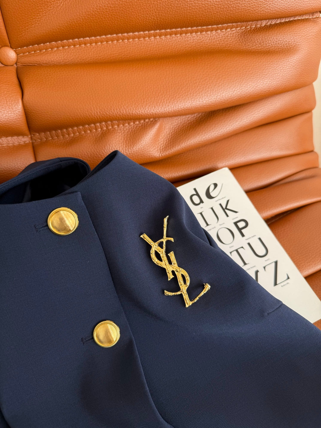 YSL 25 Dress Navy Blue mix Gold Acetate Polyester