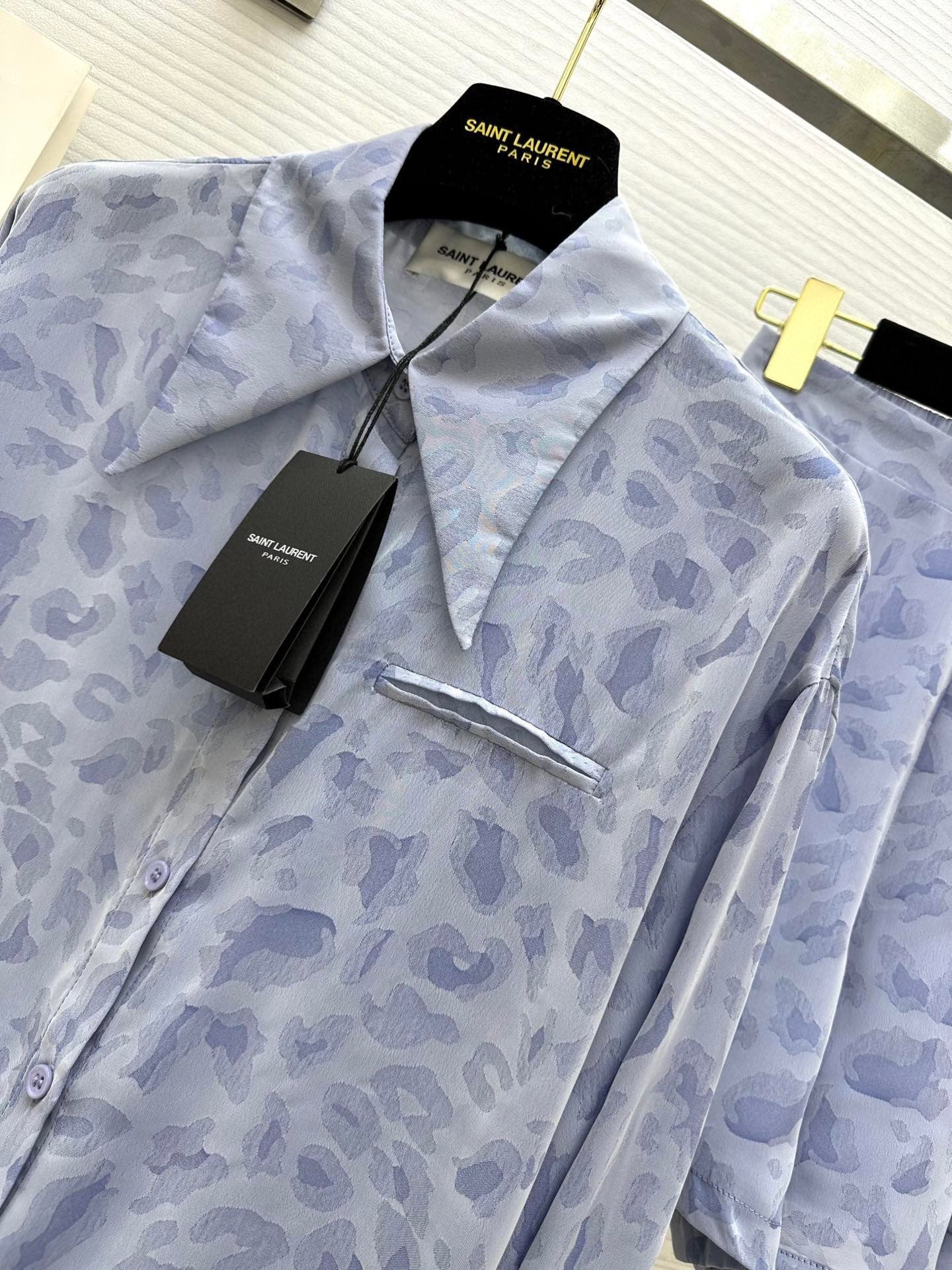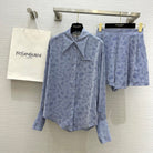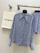 YSL 25 Leopard Print Set Pastel Blue Tencel Cotton