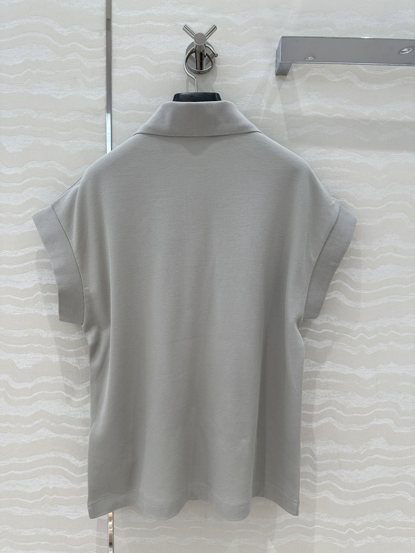 YSL Polo Collar T-shirt Gray Cotton Polyester