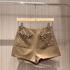 YSL Rhinestone Double Pocket Suit Shorts Light Beige Wool Polyester Rayon