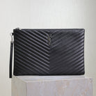 CLUTCH 36 IN BLACK QUILTED CALFSKIN SILVER BUCKLE