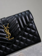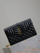 ENVELOPE CHAIN BAG 22 IN BLACK LAMBSKIN GOLD HARDWARE
