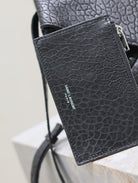 ENVELOPE CHAIN BAG 23 IN BLACK ELEPHANT TEXTURE LAMBSKIN SILVER LOGO