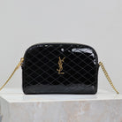 GABY ZIPPED POUCH 19 IN BLACK GLOSSY LAMBSKIN GOLD HARDWARE