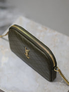 GABY ZIPPED POUCH 19 IN UNIFORM GREEN QUILTED LAMBSKIN GOLD HARDWARE
