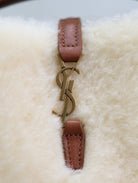 LE 37 MINI BUCKET BAG 15 IN CREAM SHEARLING AND BROWN LEATHER TRIM