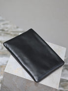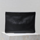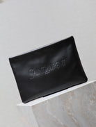 POUCH 30 IN BLACK CALFSKIN WITH EMBOSSED LOGO