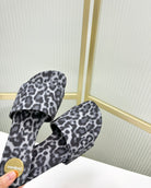 CARLYLE SLIDES IN LEOPARD GROSGRAIN BLACK WHITE