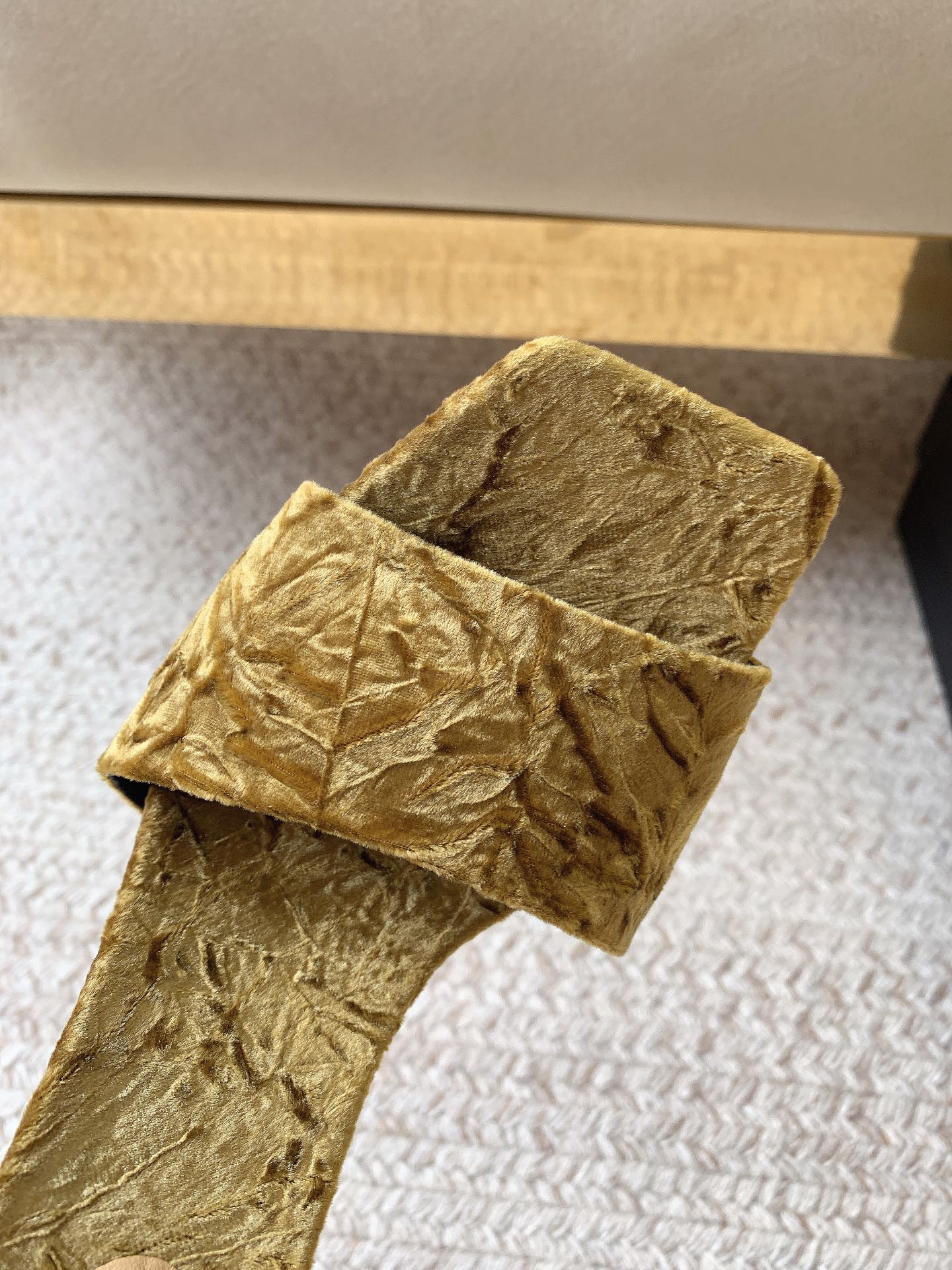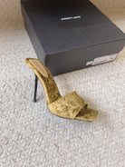 HIGH HEEL SLIDES IN SAND YELLOW VELVET