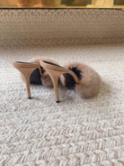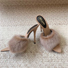 LA 16 HEELED MULES IN BEIGE RABBIT FUR AND SMOOTH LAMBSKIN