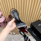 RENDEZ-VOUS SANDALS 70 IN SATIN CREPE BLACK MAROON LEATHER