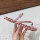 SL CRYSTAL BUCKLE THONG SANDAL LIGHT PINK SATIN