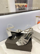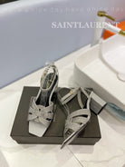SL TRIBUTE CRYSTAL SANDALS LIGHT GRAY CALFSKIN