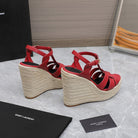 SL TRIBUTE WEDGE SANDALS RED CALFSKIN