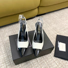 SL CAP-TOE SLINGBACKS WHITE CANVAS AND BLACK CALFSKIN