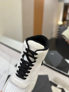 MID-TOP SNEAKERS IN WHITE AND BLACK TRIM PERFORATED LAMBSKIN