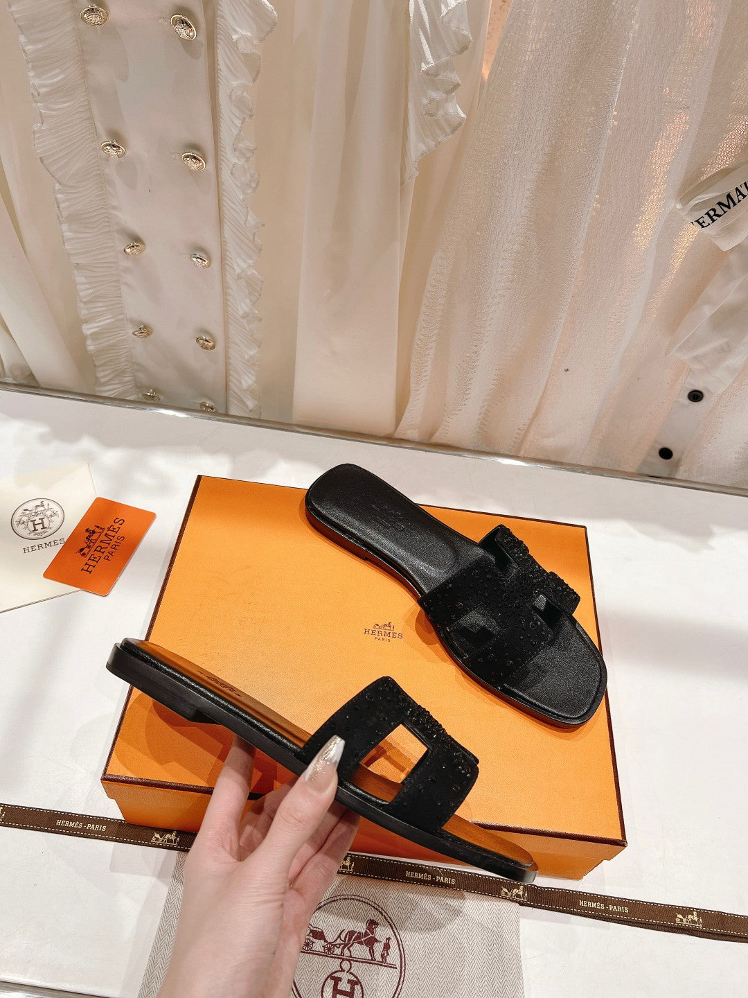 0RAN SANDAL BLACK LAMBSKIN ATTACH CRYSTALS-BLACK