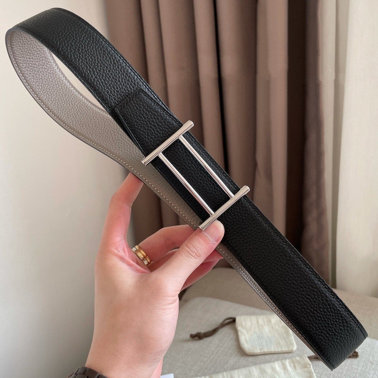 H FACE SILVER RIVERSIBLE SKIN TWO SIDES GREY BLACK 3.8CM