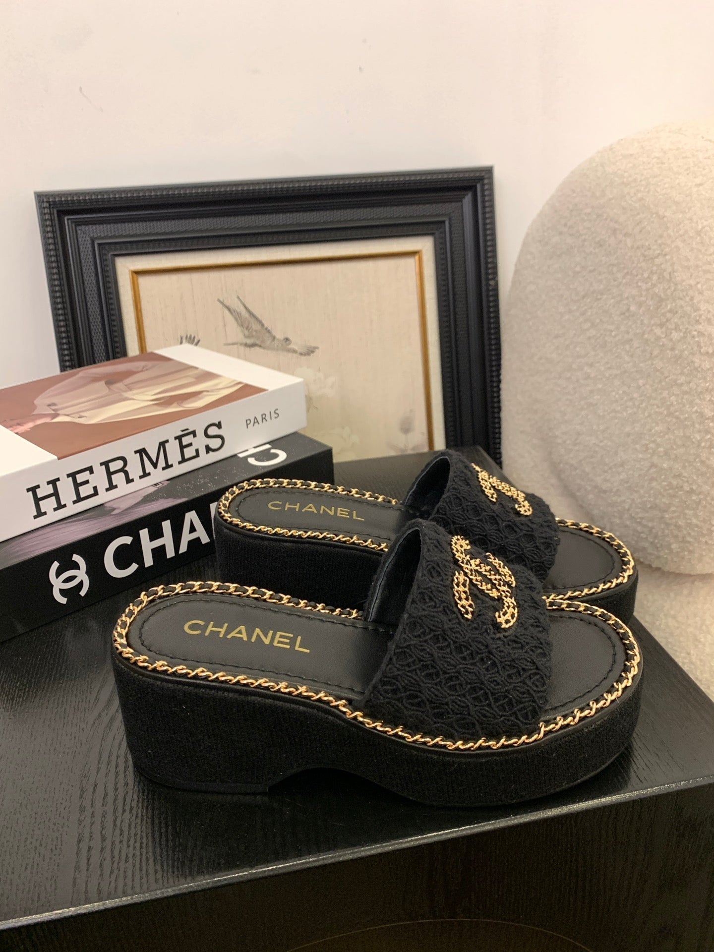CC 25 Platform Slippers Black Lambskin 310383