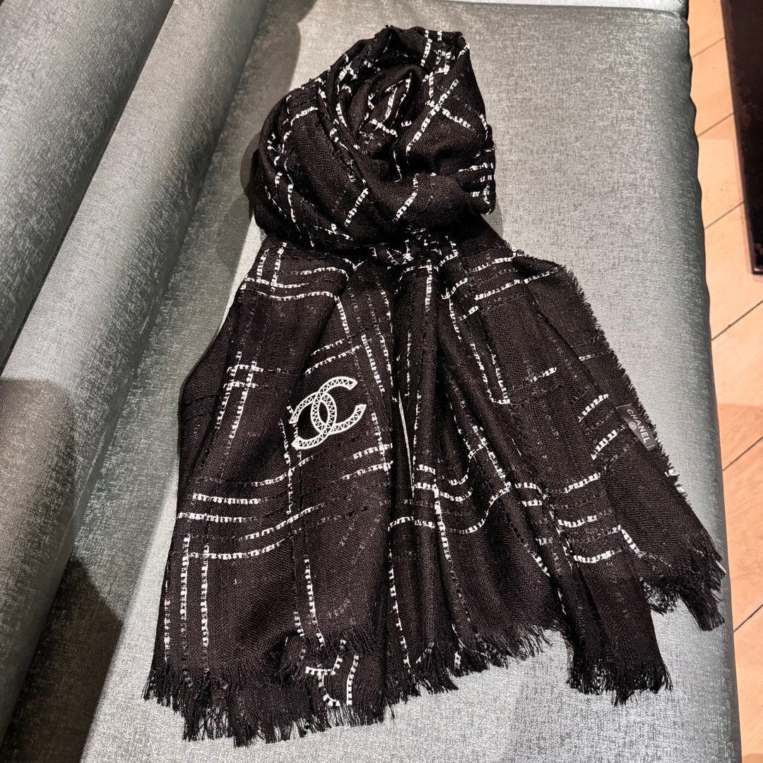CC Scarf 200 CM In Black With White Stripes Cashmere 394656