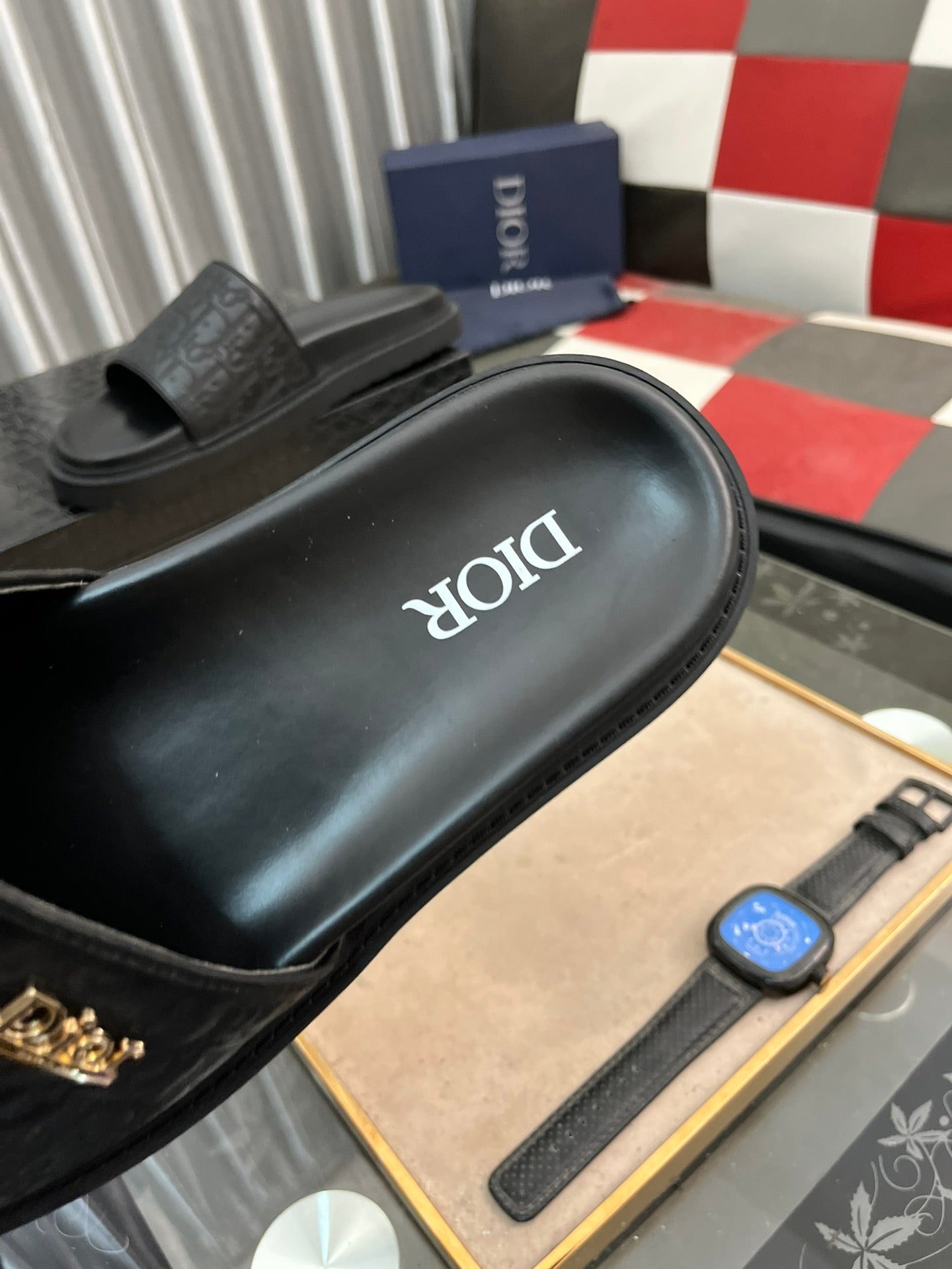 CD AQUA SLIDE SANDAL BLACK MONOGRAM CALFSKIN