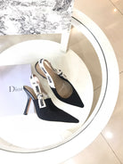 CD Slingback Pump Black Technical Fabric Beige Calfskin