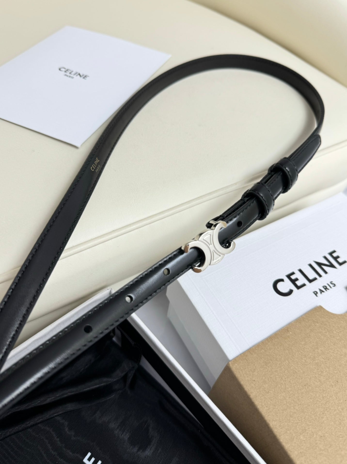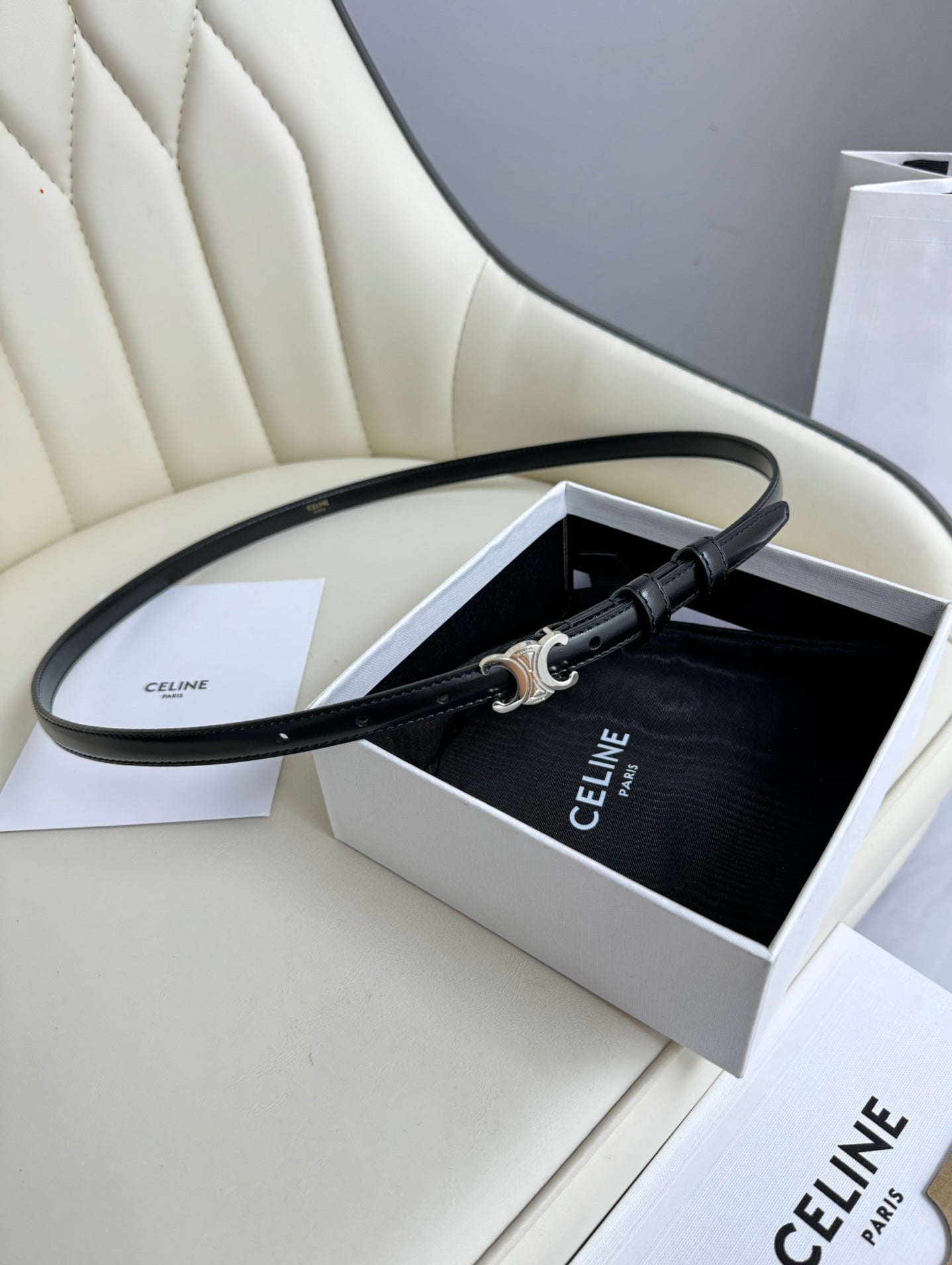 CEL Silver Buckle 13mm Belt Black Cowhide 179726