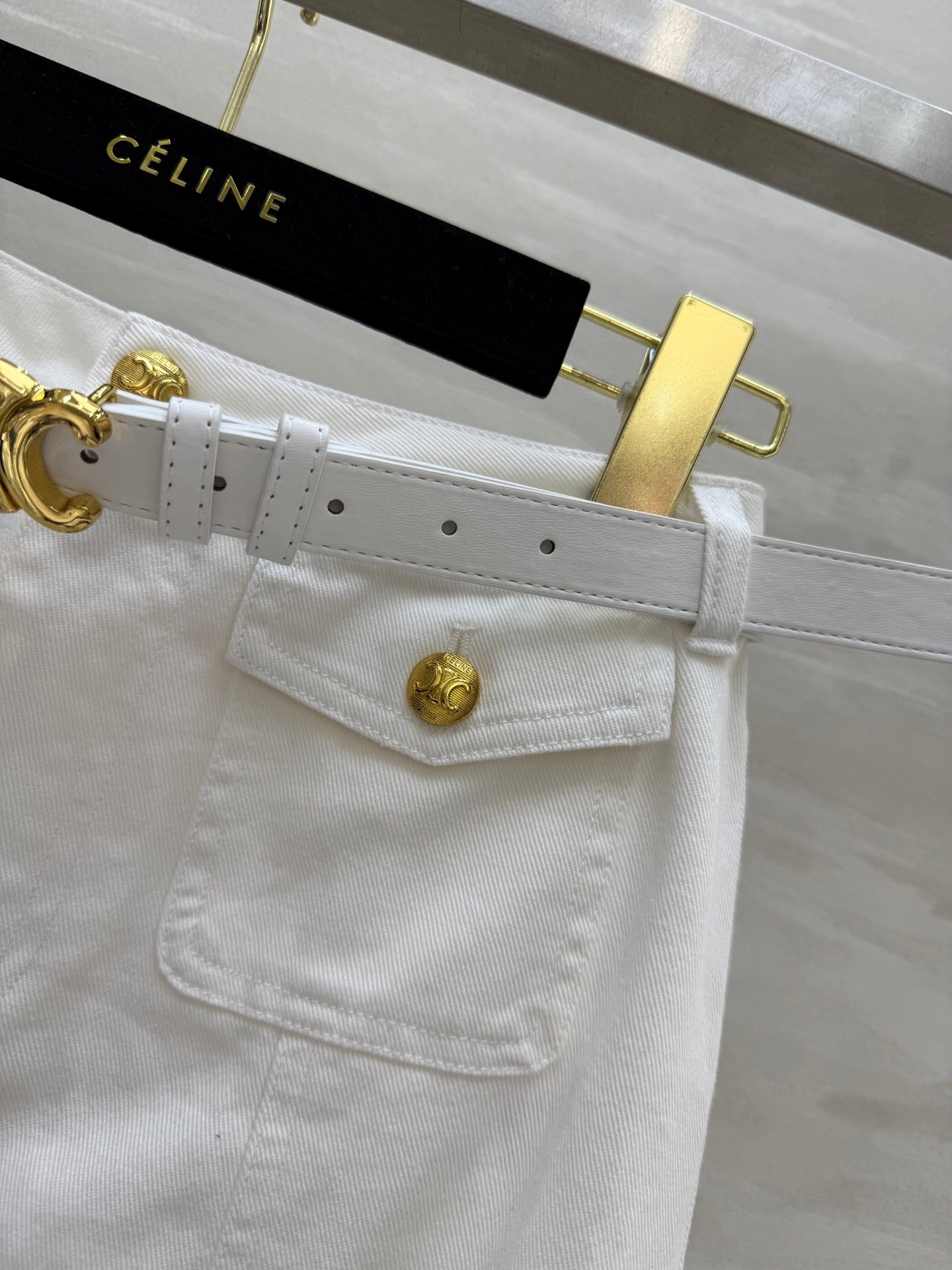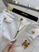 Celine 25 Denim Skirt with Logo Belt White Cotton