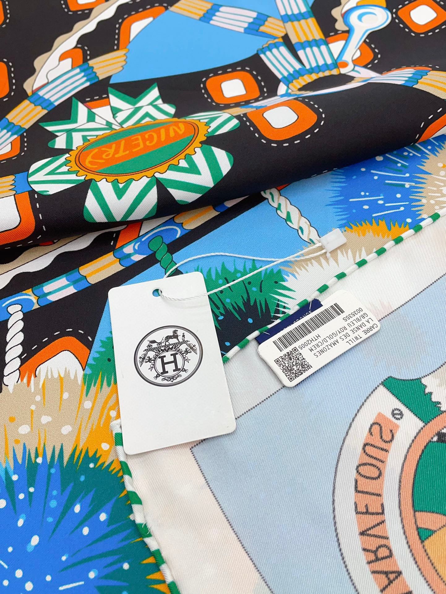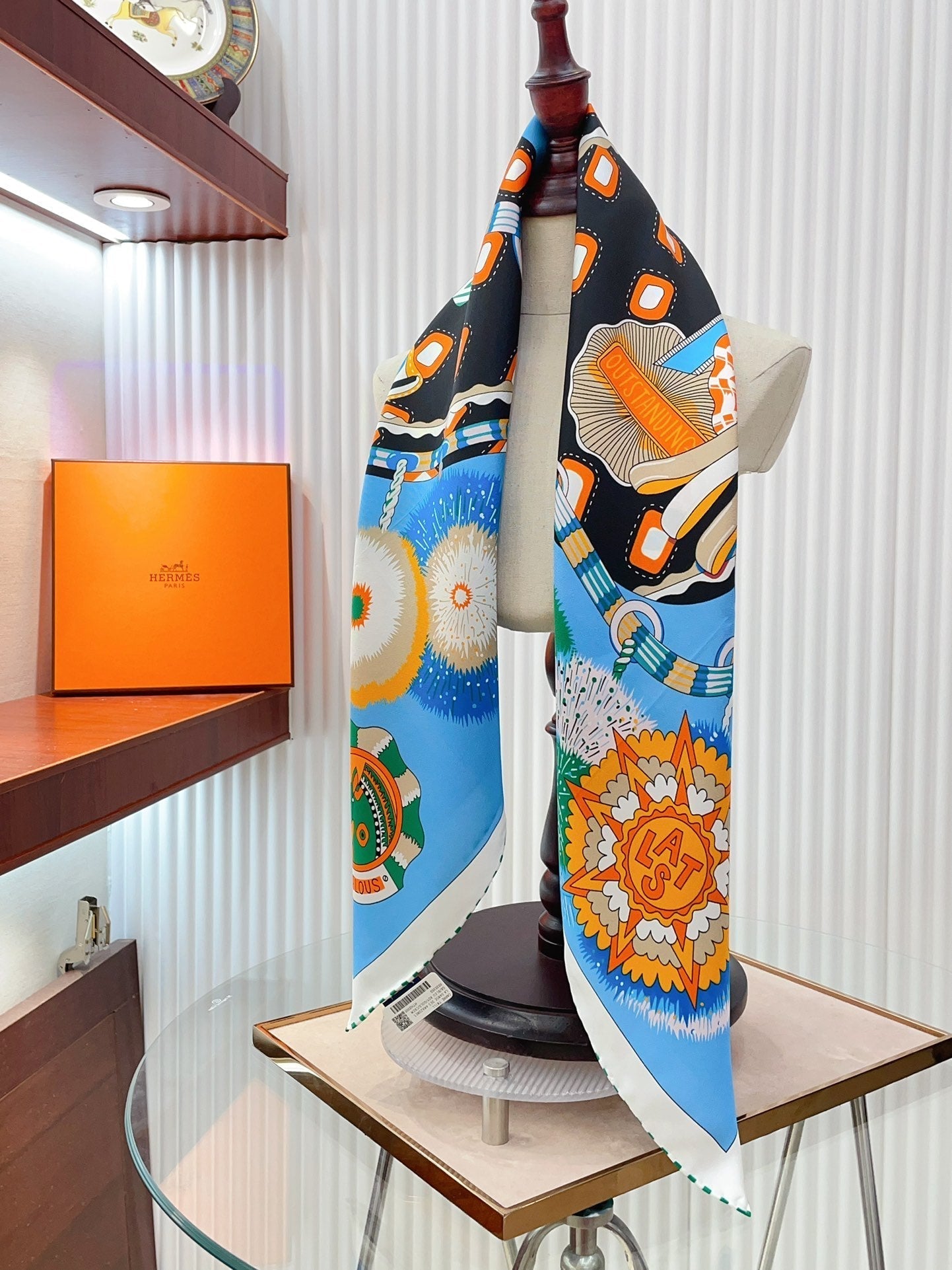 Cheval Mascotte Scarf 90 CM In Blue Colorful Silk Twill 206456