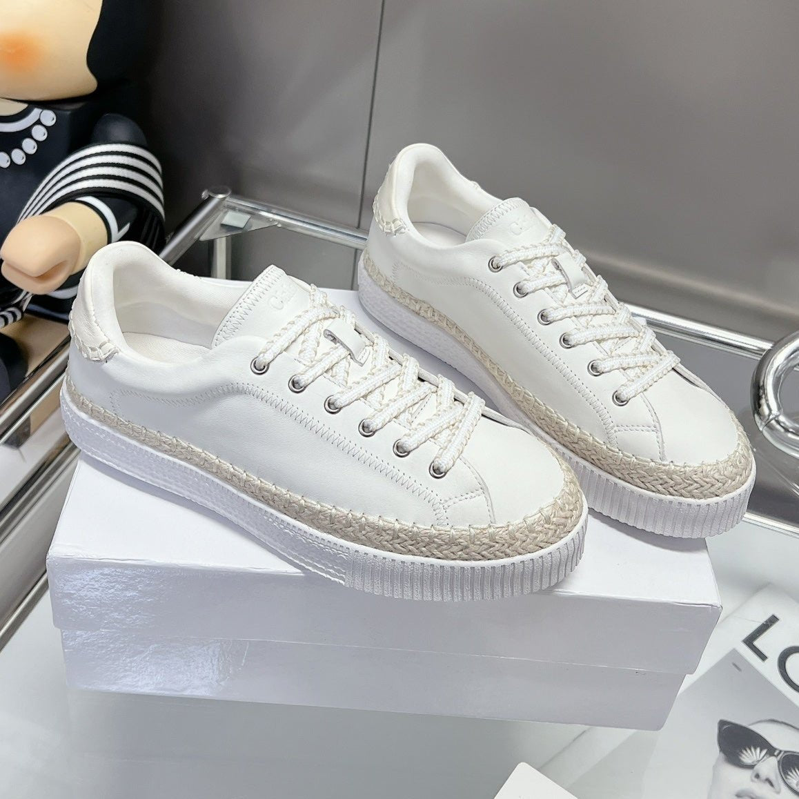 CHLOÉ TELMA LACE-UP SNEAKER IN WHITE LAMBSKIN AND RAFFIA