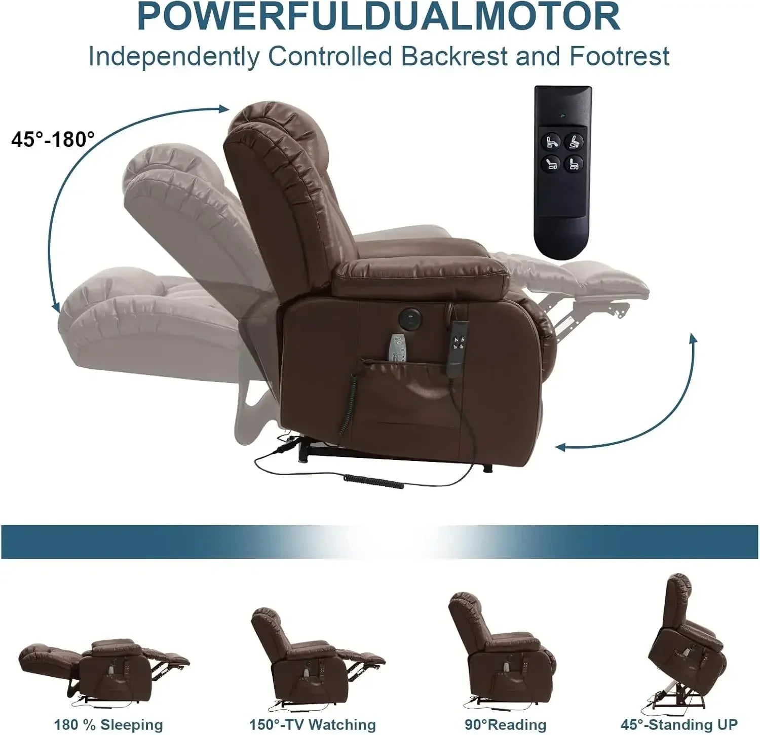 - **Features:** Unlimited recline positions, lift mechanism, USB and Type-C ports