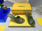 FENDI FIRST 95 MM HIGH-HEELED SANDAL IN OLIVE GREEN LAMBSKIN GOLD HARDWARE