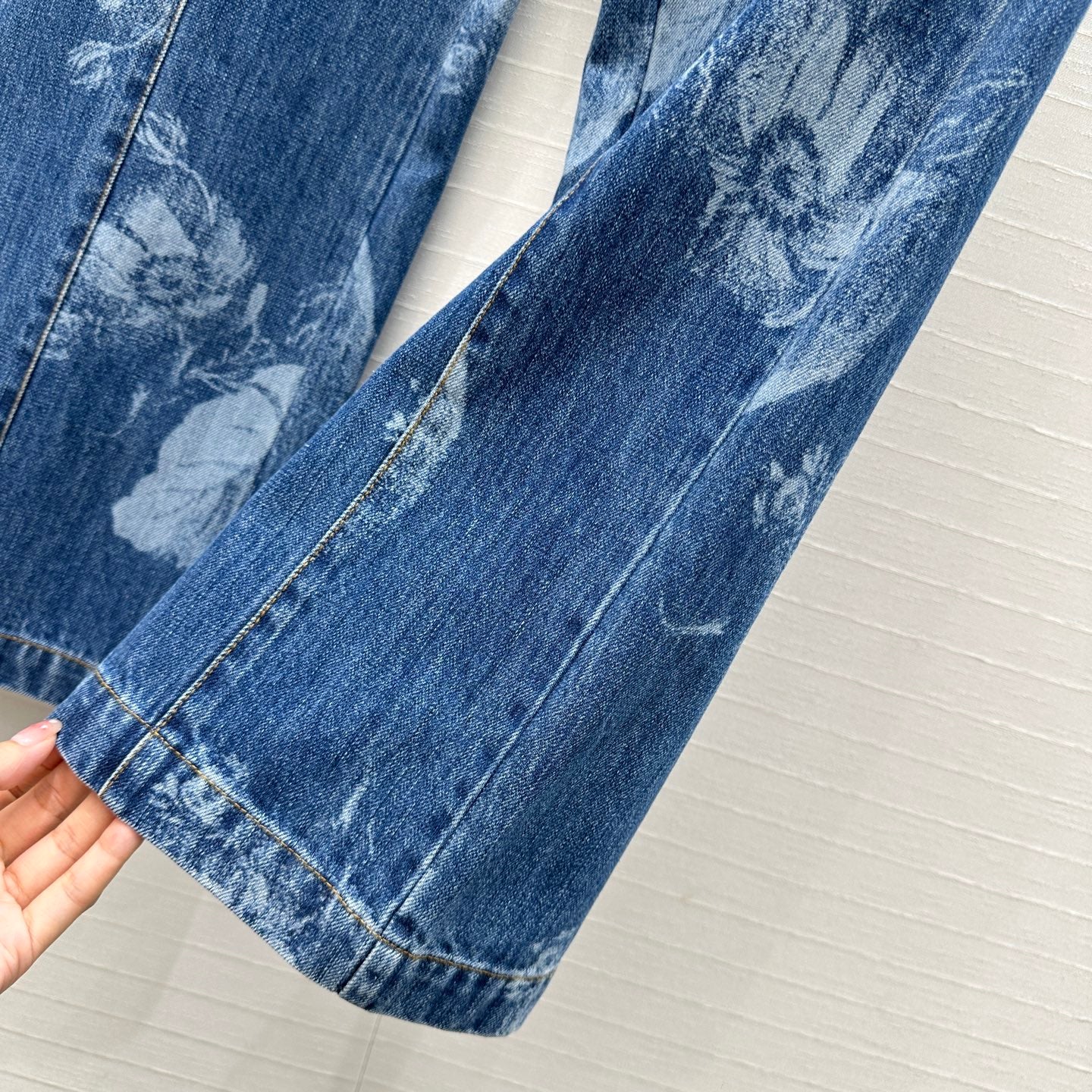 Fendi Flower Denim Straight Pants Blue Cotton